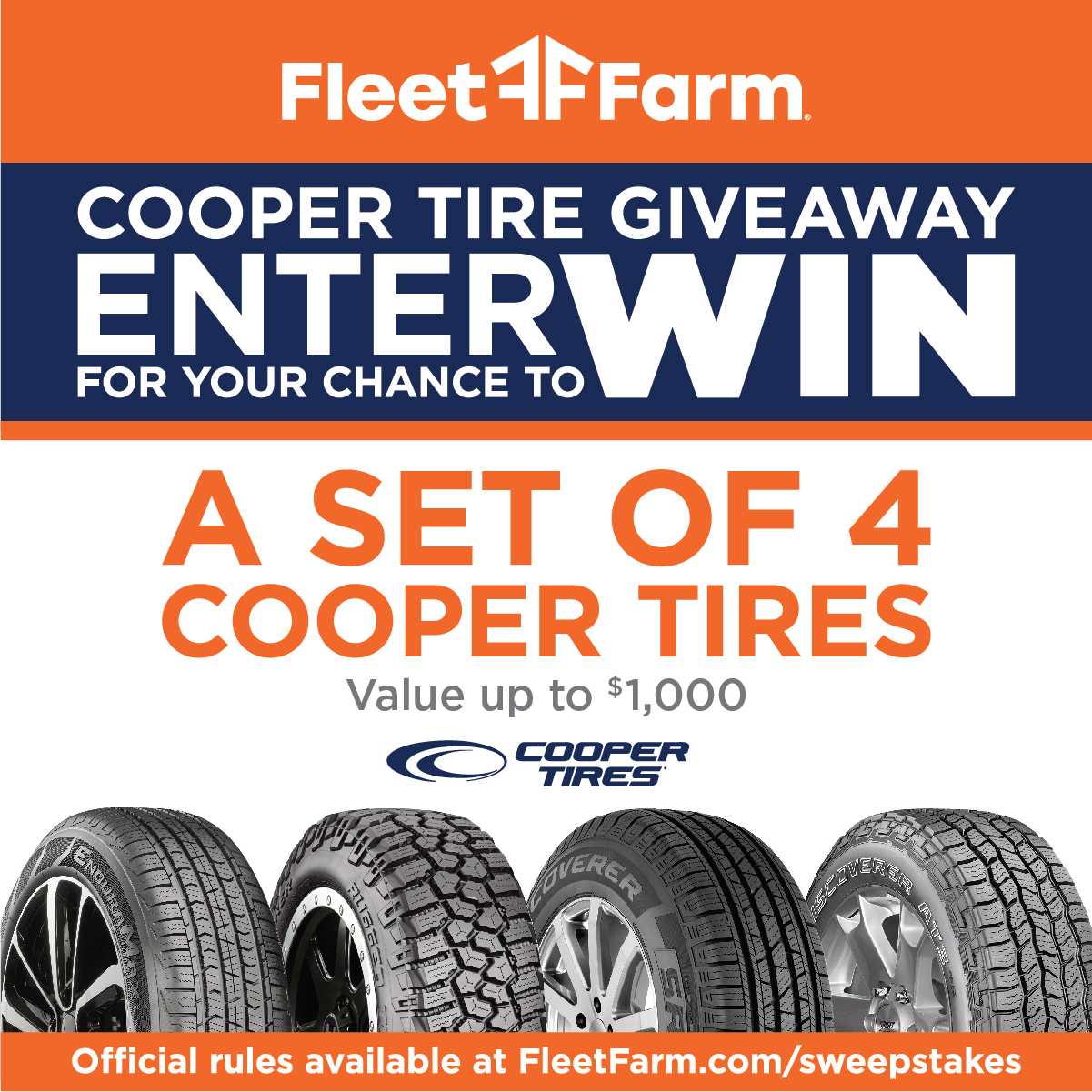 500 Fleet Farm Gift Card. Participants may enter texting. Sweepstakes Rules.